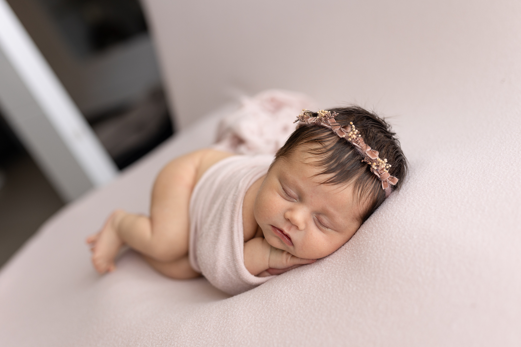 Mon approche professionnelle repose sur des techniques précises, toujours dans le respect du bien-être et de la sécurité de bébé. Le résultat est soigné et intemporel, sans laisser deviner que les photos ont été prises à domicile.